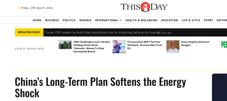 無獨(dú)有偶,尼日利亞《今日報(bào)》報(bào)道稱,中東局勢惡化令全球能源市場陷入困境,多國在油價(jià)飆升中承受重壓。在這場風(fēng)暴中,有一個(gè)國家顯得格外從容——中國。文章認(rèn)為,中國能源戰(zhàn)略不僅有效拓展了可再生能源利用規(guī)模,更在相當(dāng)程度上降低了對海外油氣的依賴。中國的實(shí)踐為其他發(fā)展中國家展現(xiàn)了擺脫能源依附、實(shí)現(xiàn)自主發(fā)展的可行路徑。