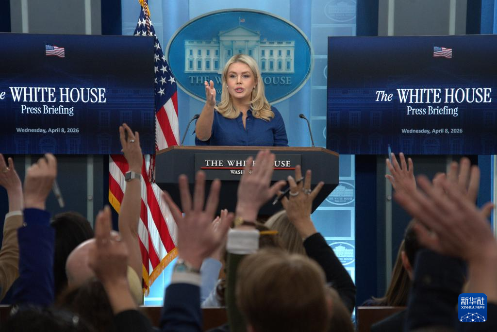4月8日,在美國(guó)首都華盛頓白宮,白宮新聞秘書(shū)萊維特出席記者會(huì)。新華社發(fā)(李源清攝)