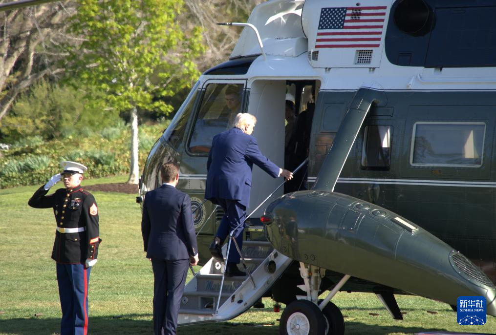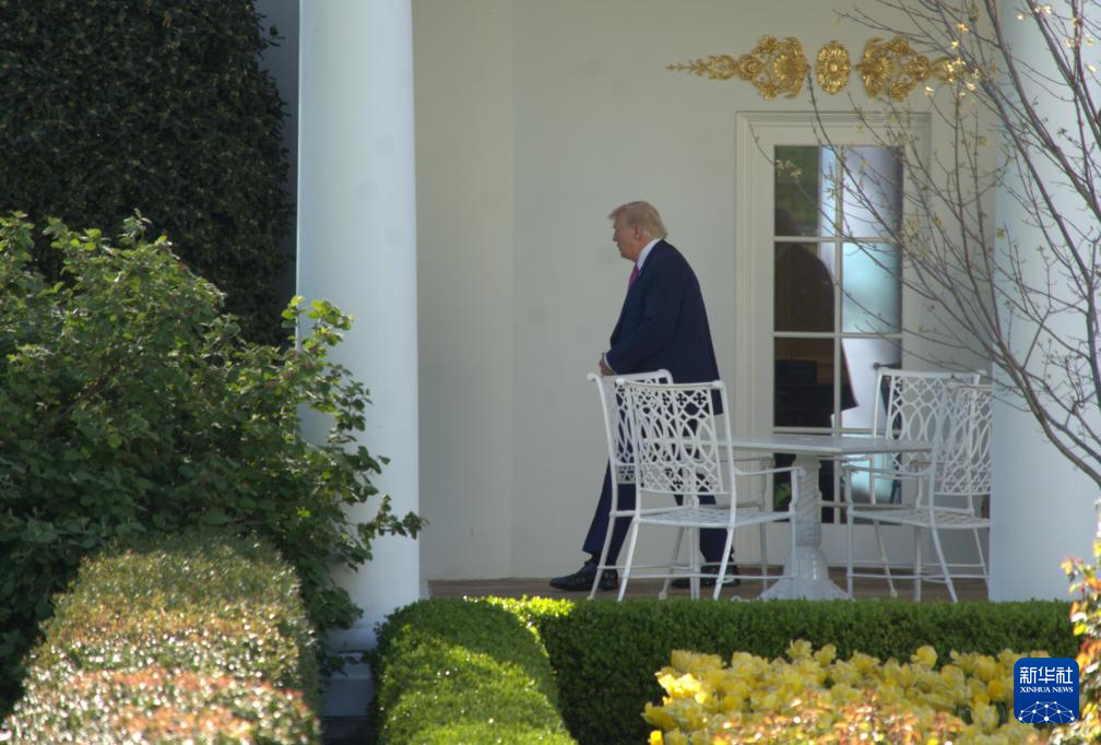 4月10日,美國總統(tǒng)特朗普準(zhǔn)備乘直升機(jī)離開華盛頓白宮。新華社發(fā)(李源清攝)