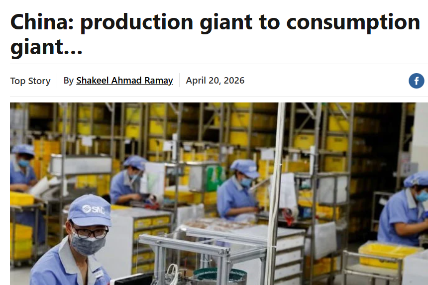 巴基斯坦《新聞報(bào)》4月20日刊發(fā)文章稱,在全球貿(mào)易環(huán)境不確定性增加的背景下,中國正在把擴(kuò)大內(nèi)需、提振消費(fèi)作為新的增長抓手。在鞏固制造業(yè)優(yōu)勢的同時(shí),中國正加快由“生產(chǎn)大國”向“消費(fèi)大國”轉(zhuǎn)型,這不僅將為自身經(jīng)濟(jì)注入新動(dòng)能,也將為全球市場帶來更大機(jī)遇。