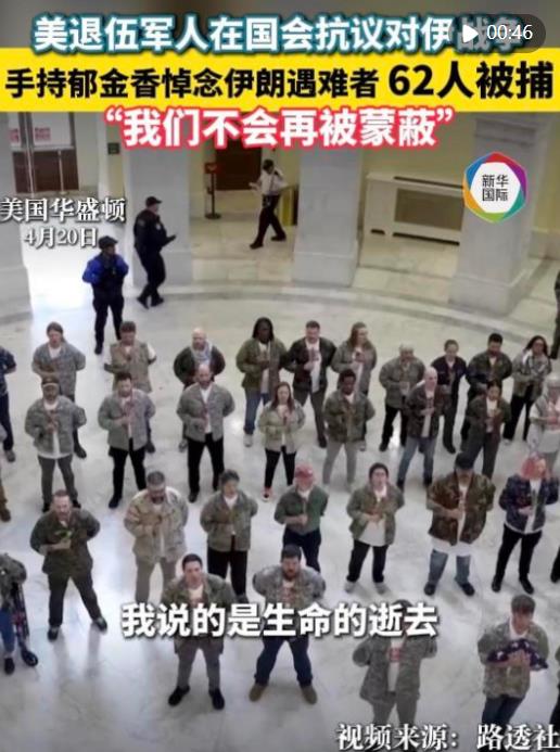 數(shù)十名美國(guó)退伍軍人及其家屬20日在美國(guó)會(huì)大廈舉行抗議活動(dòng),呼吁特朗普政府停止對(duì)伊朗的軍事行動(dòng)?;顒?dòng)中至少62人被捕。