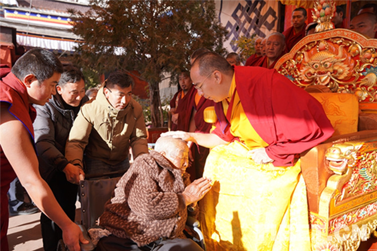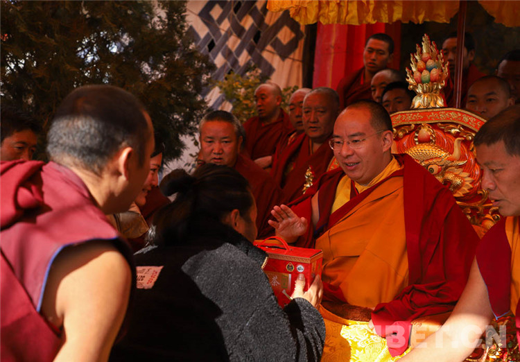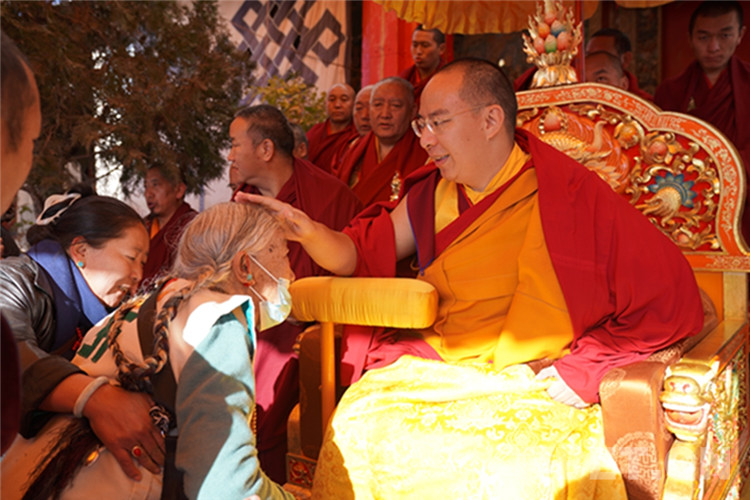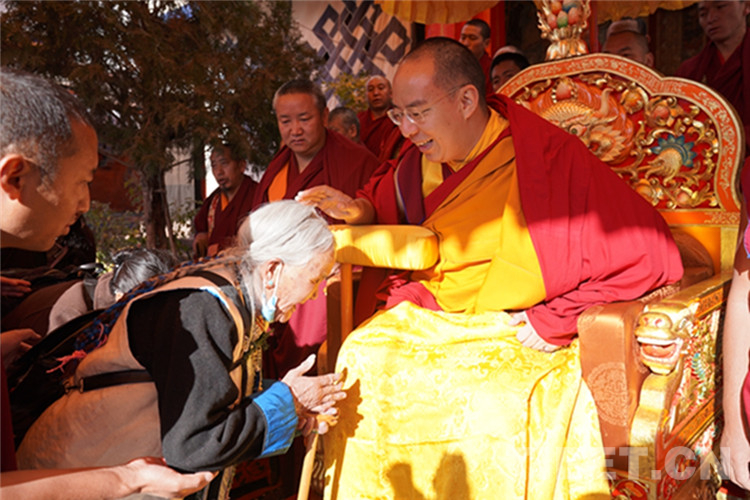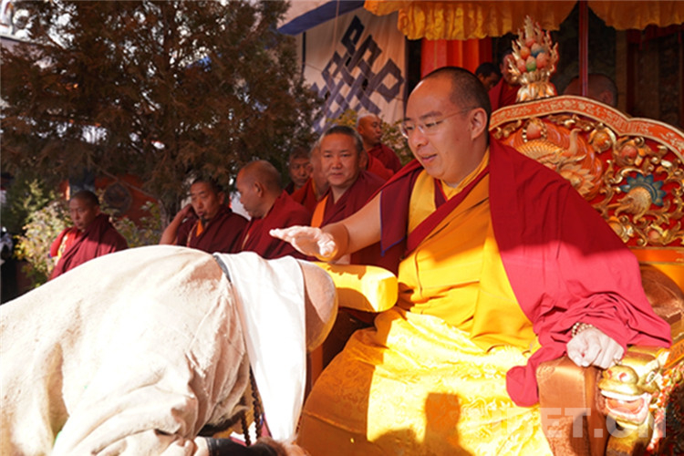 中國西藏網(wǎng)訊 11月13日至14日,全國政協(xié)常委、中國佛教協(xié)會副會長、中國佛協(xié)西藏分會會長班禪額爾德尼?確吉杰布在西藏日喀則市扎什倫布寺多加大院為信教群眾摸頂賜福,這是近年來規(guī)模最大的一次班禪摸頂賜?;顒?dòng)。圖為班禪摸頂賜福 攝影:王淑(中國西藏網(wǎng) 記者/王淑 賈華加)