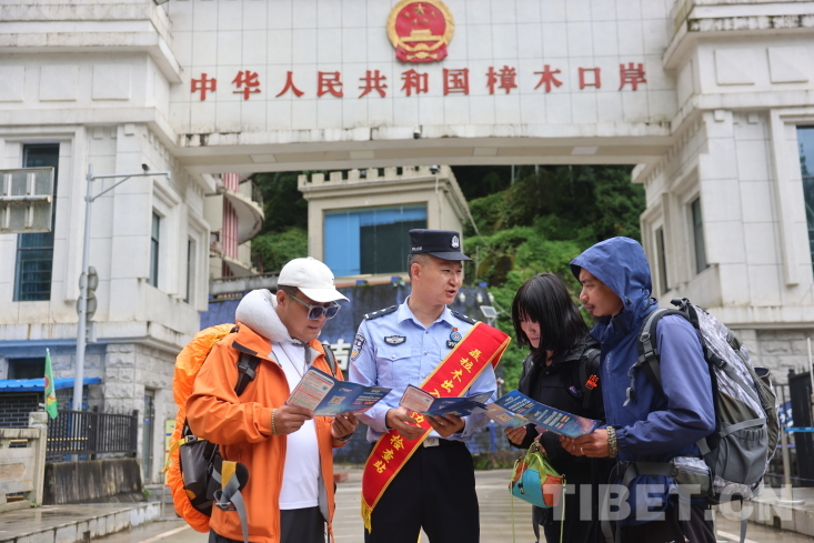 圖為聶拉木邊檢站民警向出入境旅客講解網(wǎng)絡安全知識