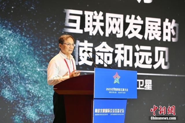 7月18日,2023年中國(guó)網(wǎng)絡(luò)文明大會(huì)網(wǎng)絡(luò)文明國(guó)際交流互鑒論壇在廈門舉辦。中外嘉賓圍繞加強(qiáng)網(wǎng)絡(luò)文明交流、互鑒、共存等話題展開探討。圖為光明日?qǐng)?bào)社原副總編輯、浙大城市學(xué)院文明與傳播研究院研究員沈衛(wèi)星作主題演講。中新社記者 王東明 攝