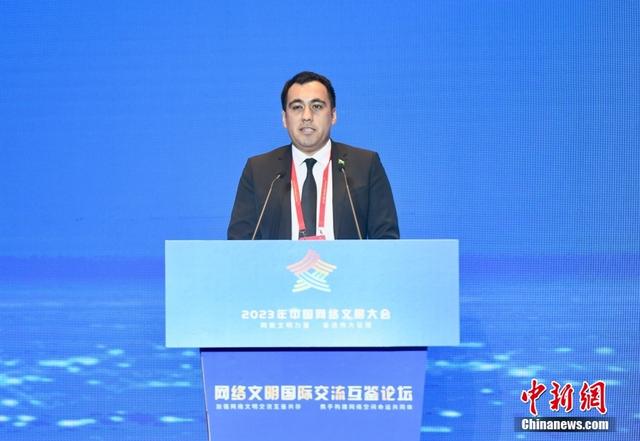 7月18日,2023年中國(guó)網(wǎng)絡(luò)文明大會(huì)網(wǎng)絡(luò)文明國(guó)際交流互鑒論壇在廈門舉辦。中外嘉賓圍繞加強(qiáng)網(wǎng)絡(luò)文明交流、互鑒、共存等話題展開探討。圖為中國(guó)石油大學(xué)(北京)土庫(kù)曼斯坦籍來華留學(xué)生若賀曼作主題演講。中新社記者 王東明 攝