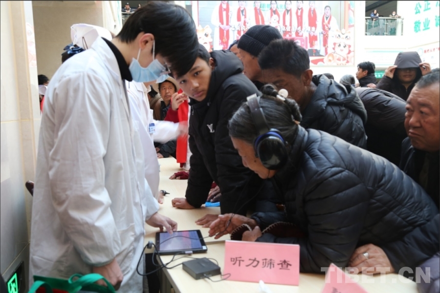 剛剛戴上助聽器的洛松老人笑著說:“以前別人說話,我得湊得很近才能聽見。今天專家?guī)臀遗淞酥犉?,一下子能聽清楚了,謝謝他們!”