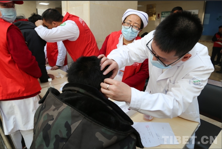 上午九點(diǎn)半,義診現(xiàn)場已排起長隊(duì),聞?dòng)嵍鴣淼娜罕娊j(luò)繹不絕。由重慶醫(yī)科大學(xué)附屬第一醫(yī)院聽力師馬國庭帶隊(duì)的4名專家專程從重慶來到昌都,與昌都市人民醫(yī)院的6名醫(yī)生組成聯(lián)合醫(yī)療隊(duì),耐心詢問患者病情,并借助專業(yè)設(shè)備仔細(xì)檢查。一句句溫暖的叮囑,讓這個(gè)高原初春暖意融融。