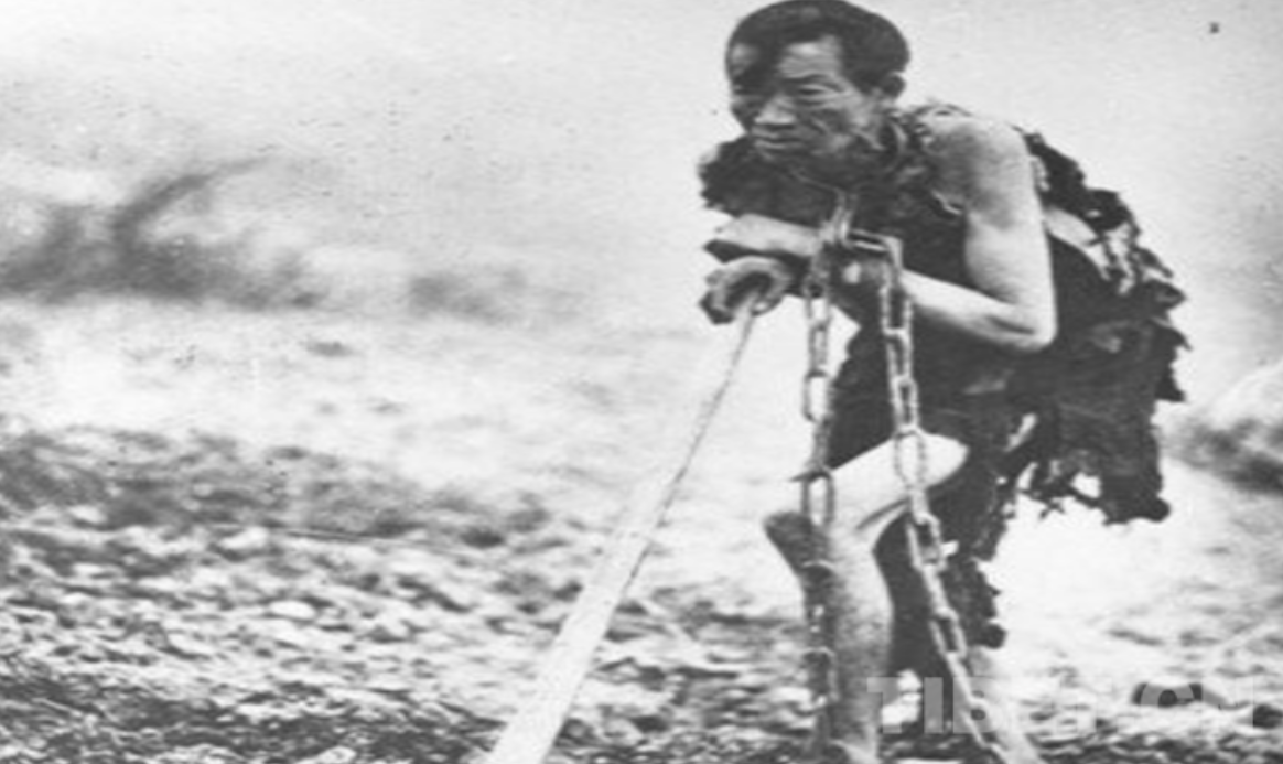 瘦弱的農(nóng)奴戴著鐵鏈在田間勞作