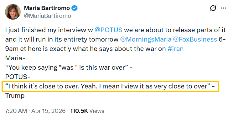 特朗普當天接受??怂剐侣勵l道記者采訪。記者問,為什么“你一直在說‘戰(zhàn)爭結(jié)束了’”。特朗普回答說:“我覺得(伊朗戰(zhàn)事)已經(jīng)接近結(jié)束了。是的,我是說,我認為已經(jīng)非常接近結(jié)束了。”