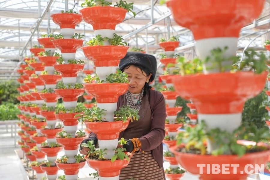 在墨竹工卡縣現(xiàn)代農(nóng)業(yè)示范園區(qū)工作的當(dāng)?shù)厝罕姡?025年10月15日攝)