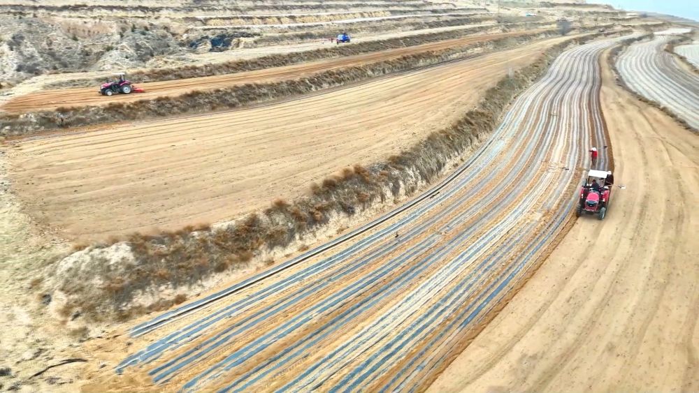 ■甘肅定西:頂凌覆膜啟春耕 旱塬梯田繪豐景