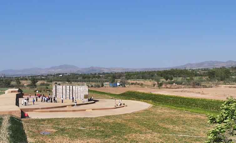 ▲觀象臺原址復(fù)原,遠(yuǎn)處可見塔兒山