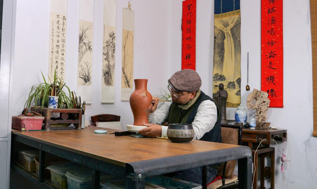 “很多年輕制陶人和我一樣,旅游時被當(dāng)?shù)貍鹘y(tǒng)紫陶文化吸引,又眷戀這里的風(fēng)土人情,最終決定長居?!彼f。