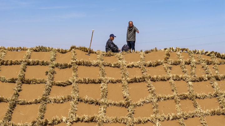 20世紀(jì)50年代,為保障我國首條沙漠鐵路——包蘭鐵路行車安全,中衛(wèi)人民探索創(chuàng)造了被譽(yù)為“治沙魔方”的草方格治沙技術(shù)和“五帶一體”鐵路防風(fēng)固沙體系,成為中國最早向世界提供的治沙方案。時(shí)至今日,草方格依然是治沙“主角”。