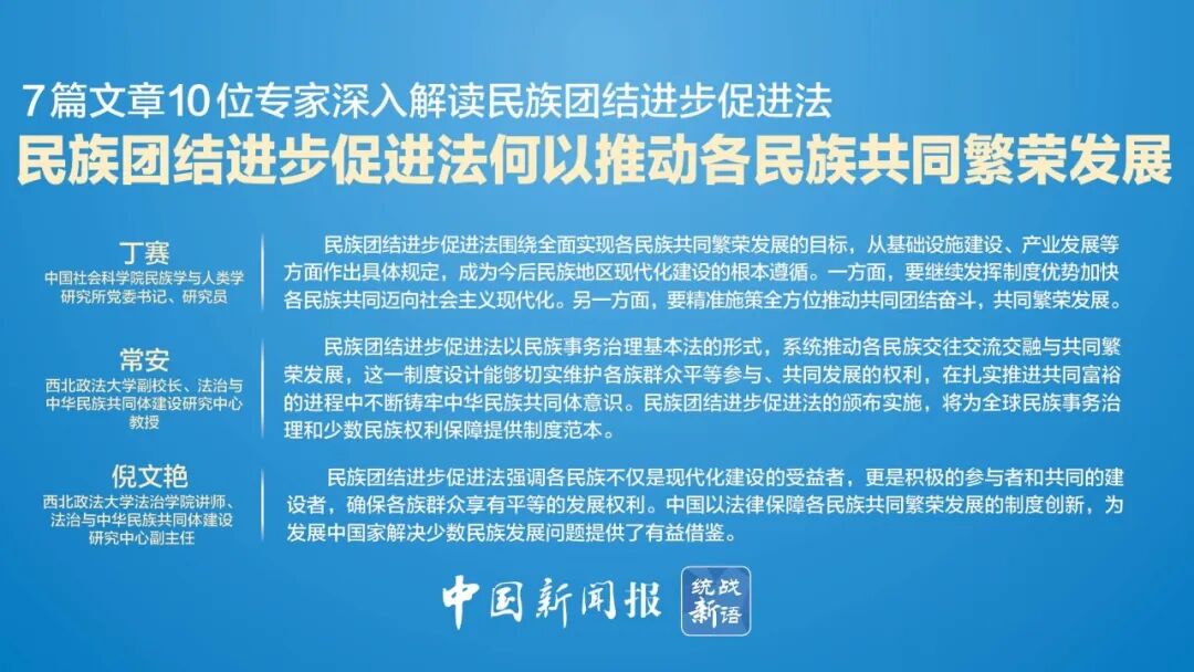 發(fā)展是解決民族地區(qū)各種問題的總鑰匙。已表決通過的民族團(tuán)結(jié)進(jìn)步促進(jìn)法設(shè)“推動(dòng)共同繁榮發(fā)展”專章,為民族地區(qū)高質(zhì)量發(fā)展提供了治理框架。如何以法治之力促進(jìn)民族團(tuán)結(jié),精準(zhǔn)回應(yīng)民族地區(qū)發(fā)展的時(shí)代需求?多位專家對(duì)此進(jìn)行深度解讀。
