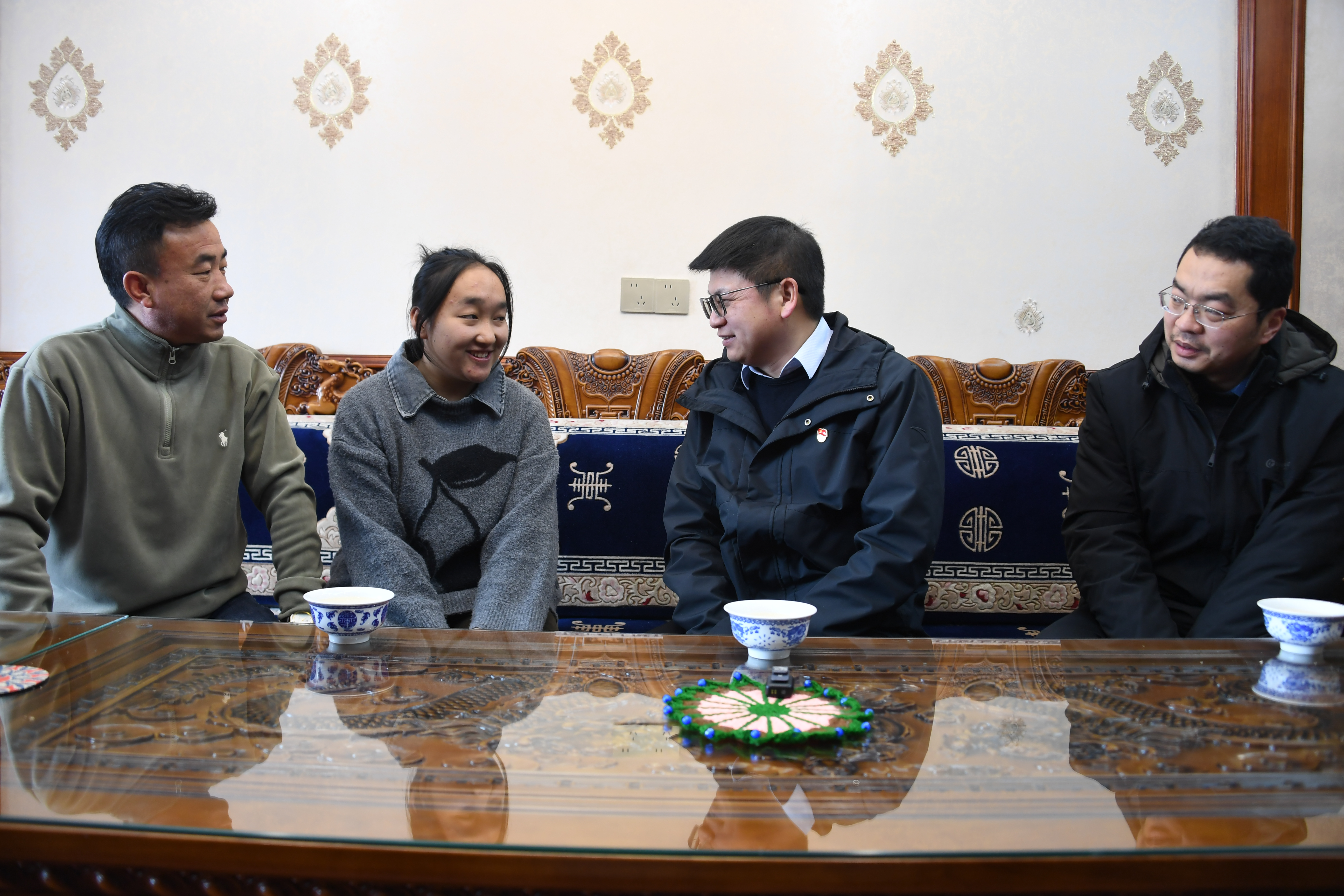 巡查完工地后,夏洪和同樣留守的援藏教師冉越溢,又準(zhǔn)備對(duì)高三學(xué)生旦增貢宗進(jìn)行一次家訪。推開(kāi)旦增貢宗家的門,一股暖意撲面而來(lái)??蛷d里,嶄新的五彩“切瑪”盒裝點(diǎn)著春節(jié)、藏歷新年的喜慶氛圍。旦增貢宗的父母熱情地將夏洪和另一位老師迎到家里,倒上熱乎的酥油茶,端上新炸的“卡塞”和風(fēng)干牦牛肉。