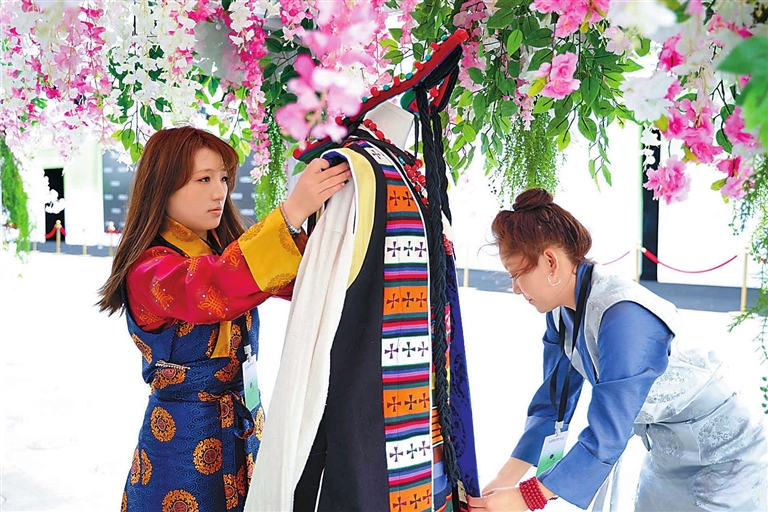 一位參與設(shè)計的藏族手工藝人說:“以前覺得老祖宗留下的東西擺在柜子里太可惜了,現(xiàn)在看到藏裝走上T臺,被那么多人喜歡,心里特別自豪?!?/p>