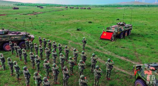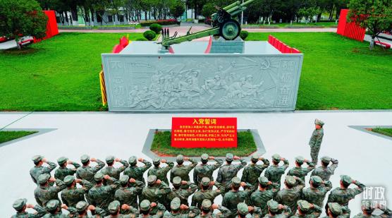 △2025年7月1日,“劉老莊連”組織黨員重溫入黨誓詞。(解放軍畫報(bào)謝沅鑫拍攝)