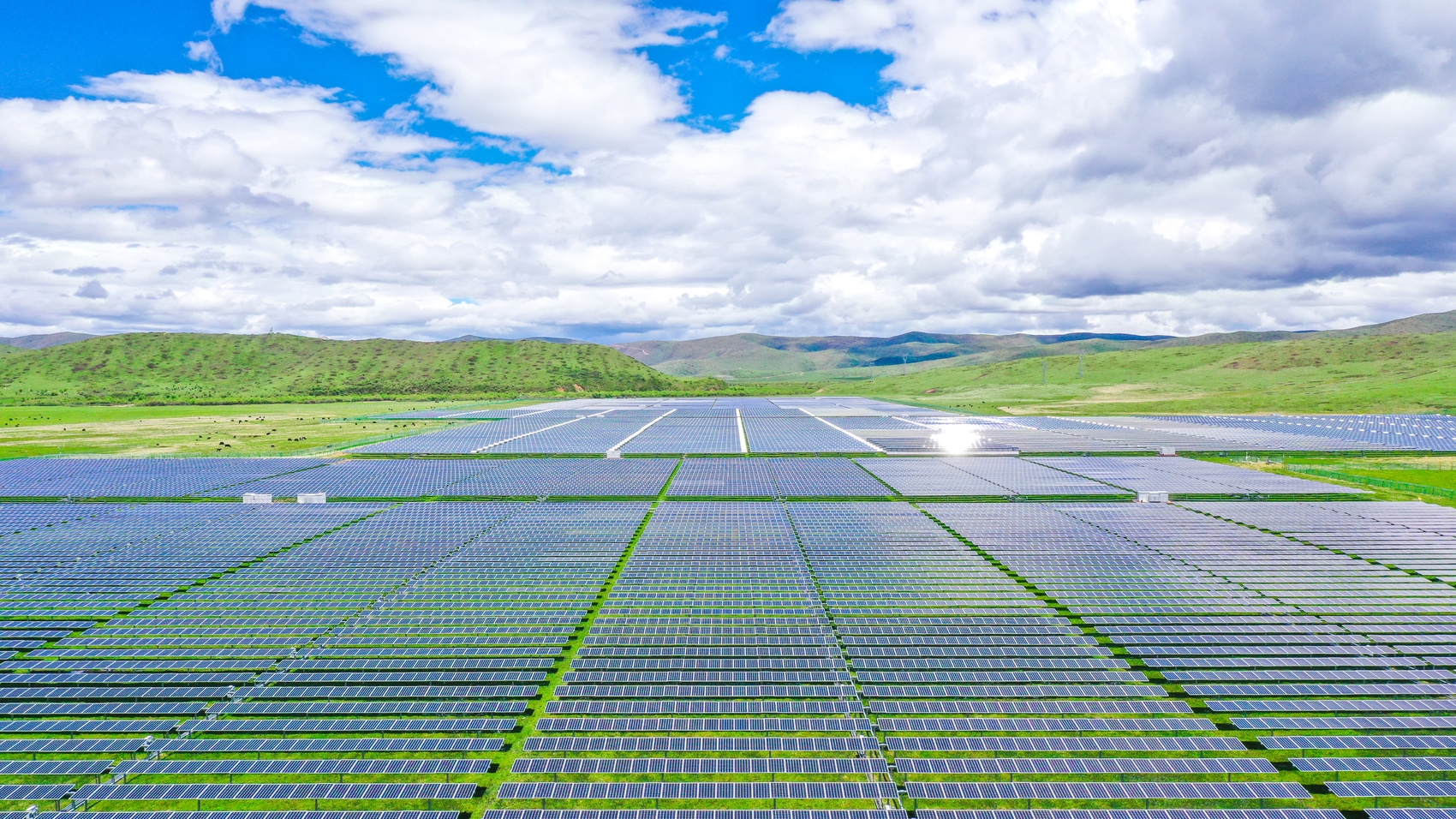 阿壩州紅原縣卓坤光伏電站航拍畫面。嚴易程 攝