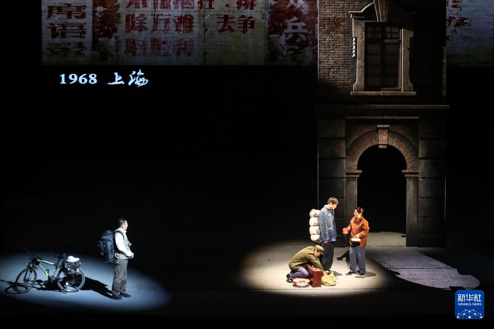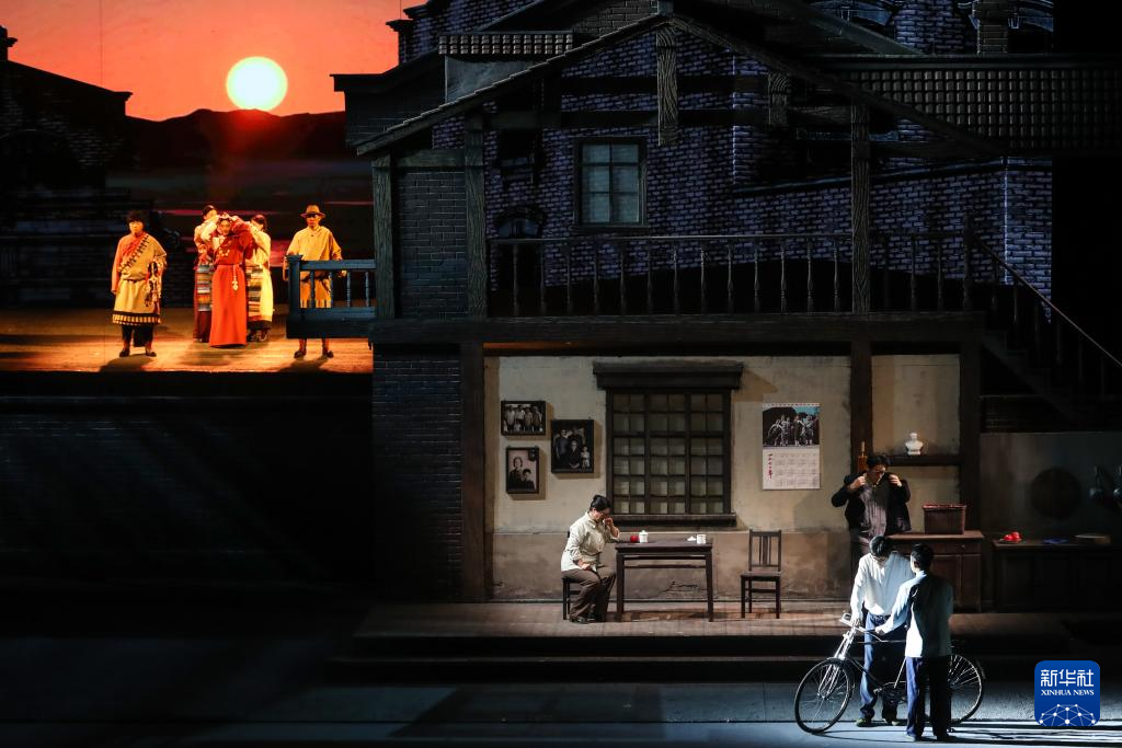 1月28日晚,在甘肅黃河劇院,甘肅省話劇院演員在話劇《青青的阿萬倉》中表演。新華社記者 郎兵兵 攝