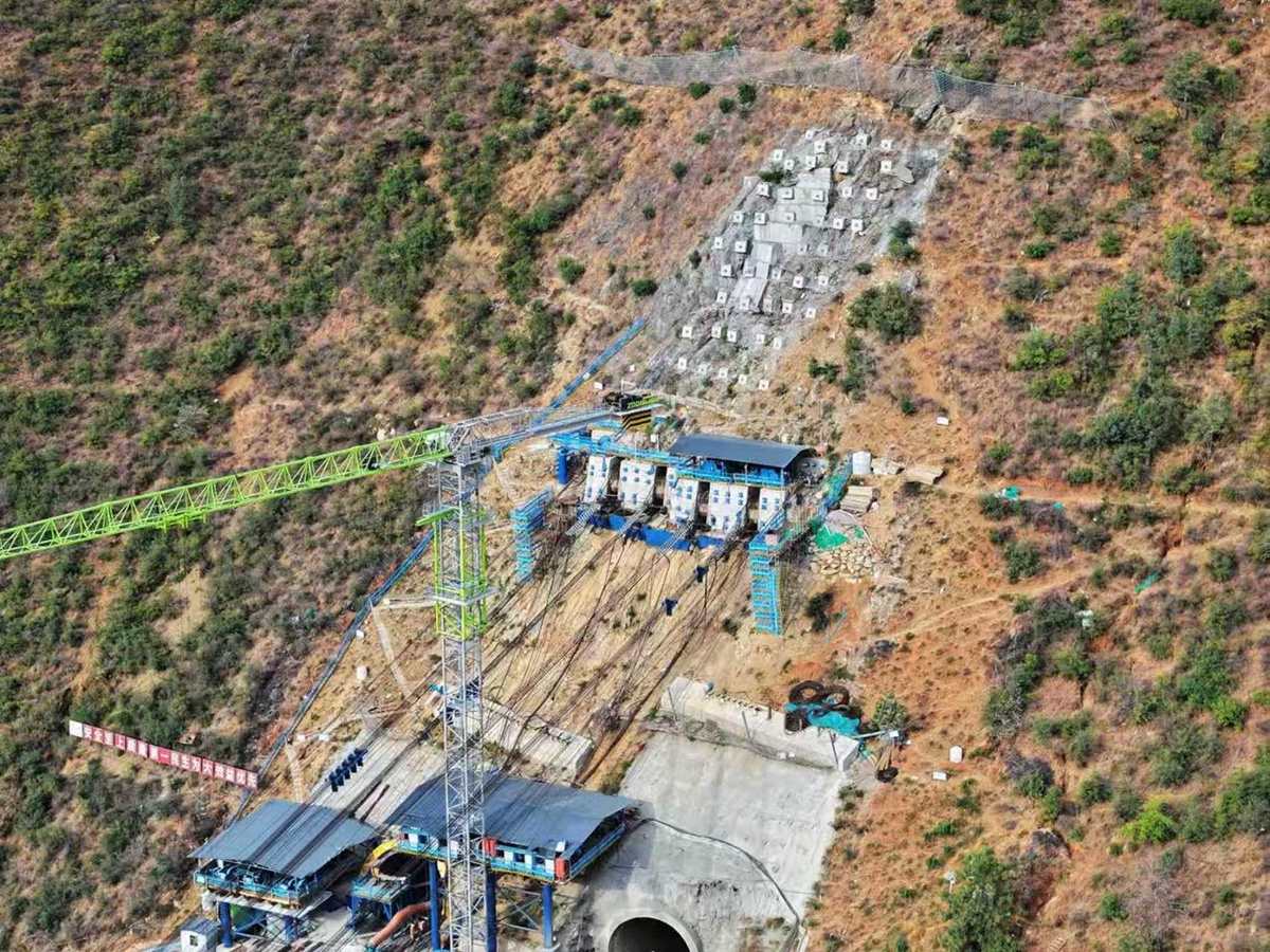 隨著4套60噸纜索吊系統(tǒng)布置完成,理塘河特大橋纜索系統(tǒng)已全面就位,形成高效協(xié)同的“空中矩陣”,大橋主體施工進程將全面提速。