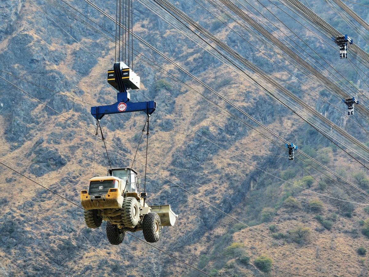 15噸輔助纜索吊——“搭建骨架”。在臨時索道完成基礎物料運輸后,2套15噸輔助纜索吊于2025年8月接力進場,核心任務是搭建木里岸作業(yè)鋼平臺、隧道錨洞口操作架等關(guān)鍵設施,并承擔中小型設備轉(zhuǎn)運、施工渣土短途運輸?shù)裙ぷ?,?0噸主纜索吊系統(tǒng)安裝和后續(xù)施工提供作業(yè)基礎。