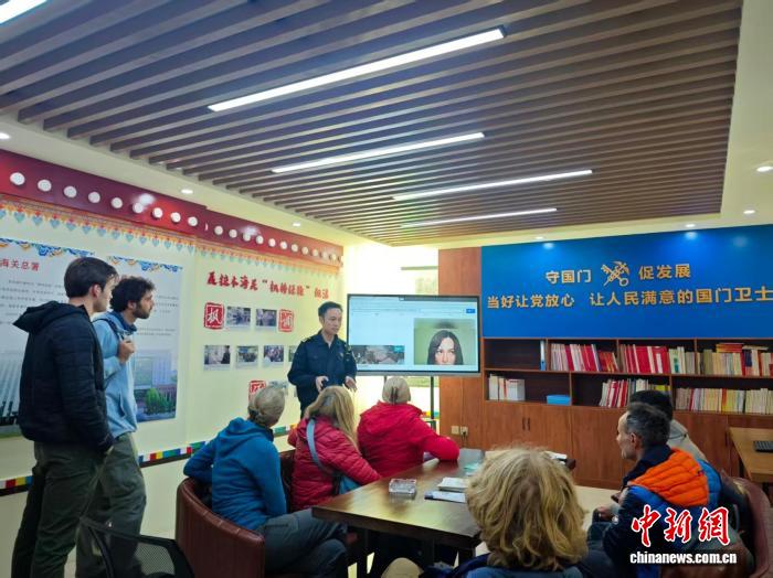 圖為拉薩海關(guān)向外籍旅客宣傳海關(guān)進(jìn)出境監(jiān)管規(guī)定。昂翁拉姆 攝