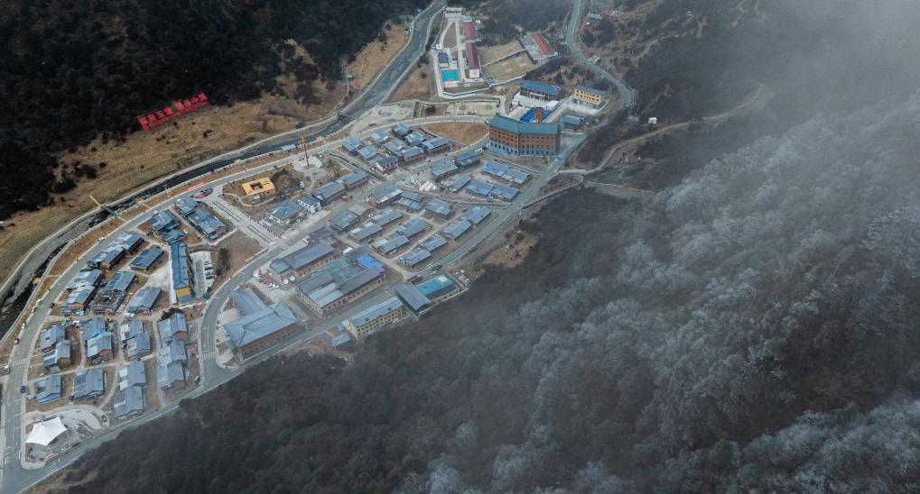 這是2月5日拍攝的云霧中的玉麥鄉(xiāng)全景(無(wú)人機(jī)照片)。新華社記者 丁增尼達(dá) 攝