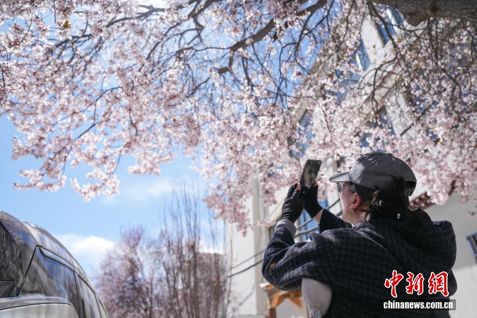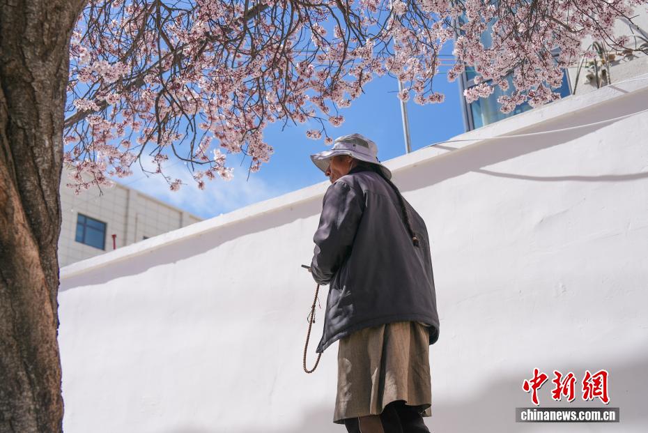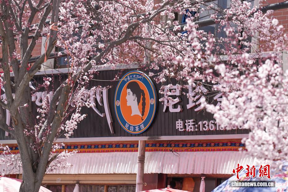 3月18日,隨著雪域高原天氣回暖,西藏拉薩市區(qū)道路旁春花綻放。拉薩城關(guān)區(qū)軍民路兩側(cè),花朵盛開,吸引不少市民和游客前來(lái)拍照留念。一時(shí)間,軍民路成了拉薩今春熱門打卡地,人們穿梭其中,感受春日的美好。圖為拉薩軍民路,春花掩映下的藏式茶館。貢確 攝
