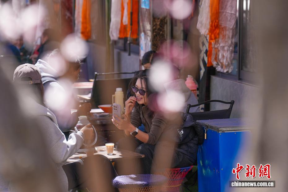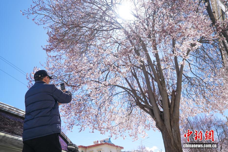 3月18日,隨著雪域高原天氣回暖,西藏拉薩市區(qū)道路旁春花綻放。拉薩城關(guān)區(qū)軍民路兩側(cè),花朵盛開,吸引不少市民和游客前來(lái)拍照留念。一時(shí)間,軍民路成了拉薩今春熱門打卡地,人們穿梭其中,感受春日的美好。圖為市民在盛開的花樹下喝茶聊天。貢確 攝