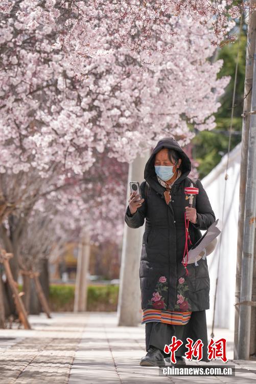 3月18日,隨著雪域高原天氣回暖,西藏拉薩市區(qū)道路旁春花綻放。拉薩城關(guān)區(qū)軍民路兩側(cè),花朵盛開,吸引不少市民和游客前來(lái)拍照留念。一時(shí)間,軍民路成了拉薩今春熱門打卡地,人們穿梭其中,感受春日的美好。圖為市民在春花綻放的道路旁賞花。
