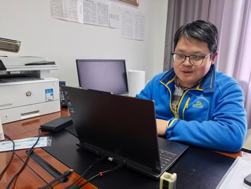 3月30日,楊樂通過黑頸鶴衛(wèi)星跟蹤數(shù)據(jù)管理系統(tǒng)查看遷徙情況。新華社記者蔣夢辰 攝