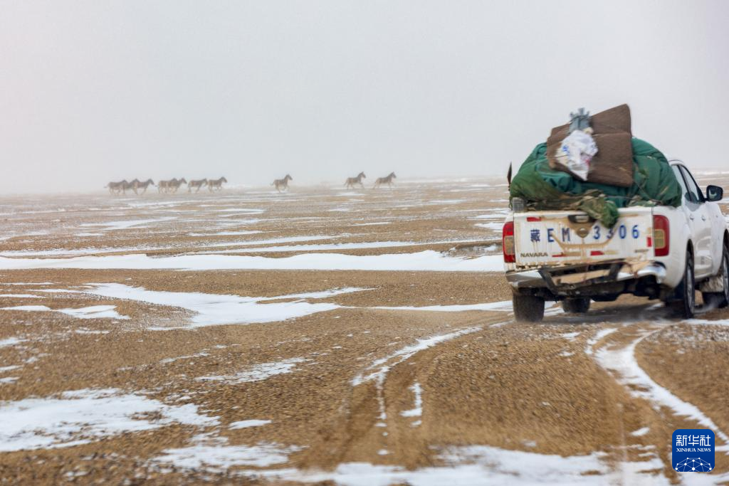 這是4月11日在巡護路上遇到的藏野驢群。新華社記者 姜帆 攝
