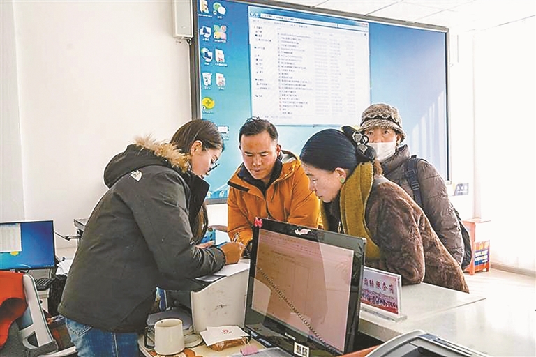 日喀則市桑珠孜區(qū)幸福社區(qū)工作人員在幫助居民交醫(yī)保。記者 桑旦歐珠 攝
