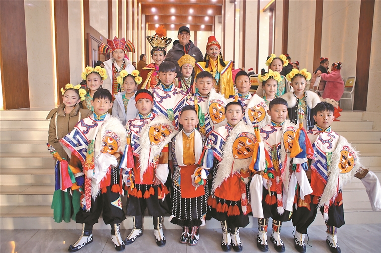 圖為中普瓊和自治區(qū)群藝館(區(qū)非遺保護(hù)中心)少兒藏戲班演出學(xué)生合影。