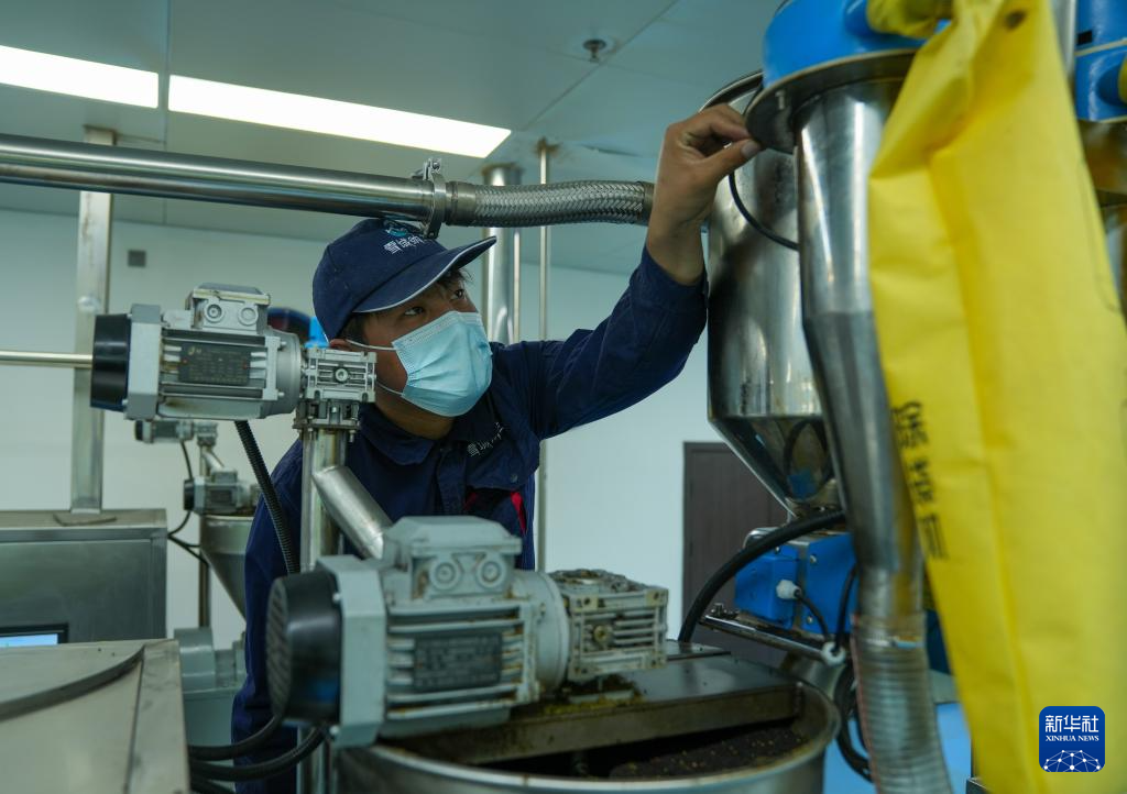 西藏山南市扎囊縣重點招商引資企業(yè)——西藏納蘭生態(tài)產(chǎn)業(yè)有限公司工作人員操作微波烘烤設(shè)備制作食用油(3月17日攝)。新華社記者 晉美多吉 攝