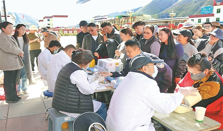 圖為那曲市中心血站赴嘉黎縣開展團(tuán)體采血活動。記者 趙書彬 攝