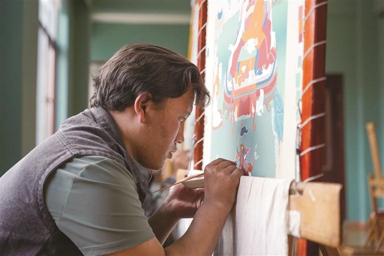 唐卡畫師正在創(chuàng)作。記者 桑旦歐珠 攝
