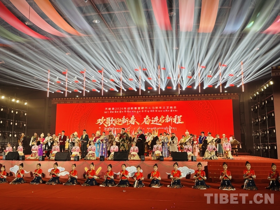 中國(guó)西藏網(wǎng)訊 1月30日晚,青海省海西蒙古族藏族自治州天峻縣文化活動(dòng)中心燈光璀璨、歌舞飛揚(yáng),2026年藏歷火馬新年文藝晚會(huì)在這里舉行。晚會(huì)以“歡歌迎新春·奮進(jìn)啟新程”為主題,為全縣各族群眾奉獻(xiàn)了一場(chǎng)精彩紛呈的文化盛宴。