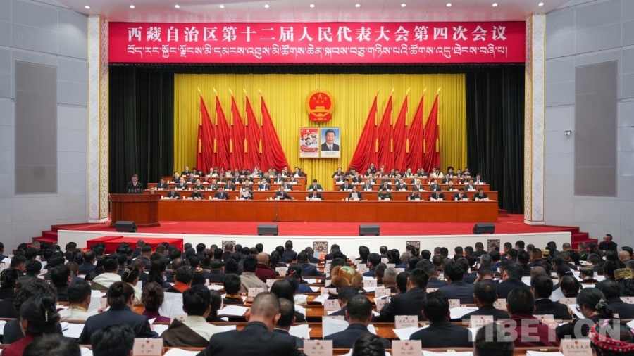 圖為西藏自治區(qū)第十二屆人民代表大會第四次會議第二次全體會議現(xiàn)場 攝影:賈華加