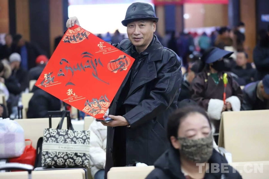圖為春運(yùn)首日拉薩站為旅客送上祝福