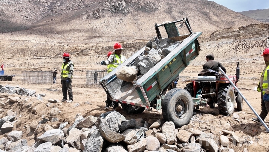 中國西藏網(wǎng)訊 春日回暖,在西藏日喀則市南木林縣奴瑪鄉(xiāng)奴瑪村,以工代賑項目施工現(xiàn)場熱火朝天。