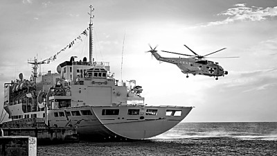中國(guó)海軍“和平方舟”號(hào)醫(yī)院船靠泊所羅門群島霍尼亞拉港期間,艦載醫(yī)療救護(hù)直升機(jī)開展巡診服務(wù)。新華社發(fā)