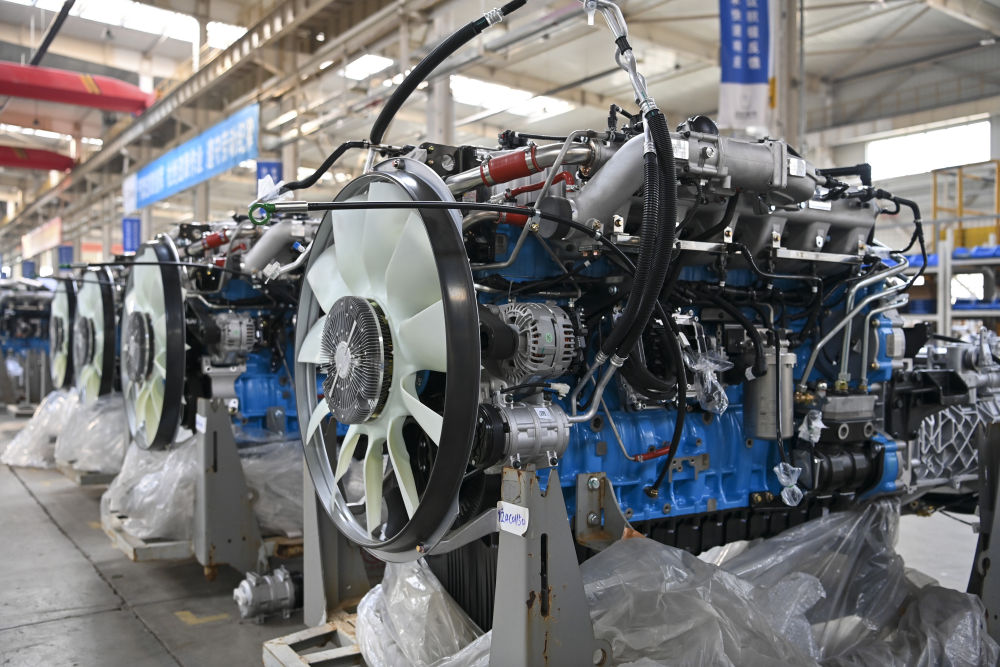 這是在位于山西省晉中市榆次區(qū)的山西新能源汽車工業(yè)有限公司(吉利晉中基地)拍攝的甲醇發(fā)動(dòng)機(jī)(4月1日攝)。新華社記者 楊晨光 攝