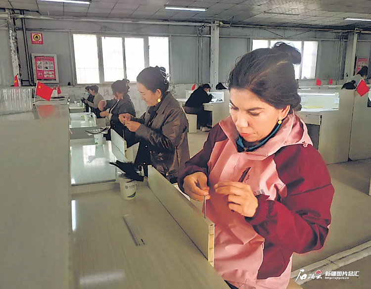 該公司負責人迪麗達爾·克依木說:“這個月我們有個100萬元的訂單,工人正加班加點生產(chǎn)。”