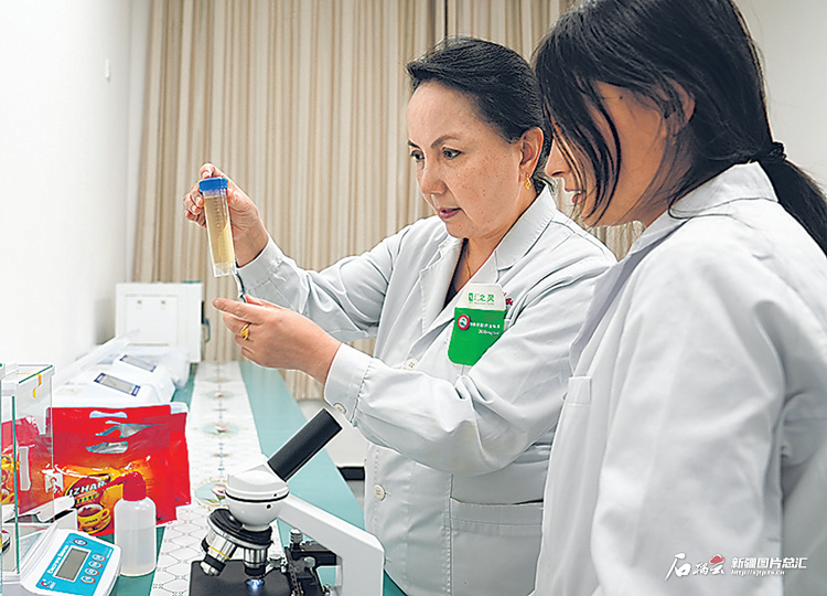 新疆醫(yī)資豪健康科技有限公司技術人員在研究配制新茶葉。乃比江·艾則孜攝