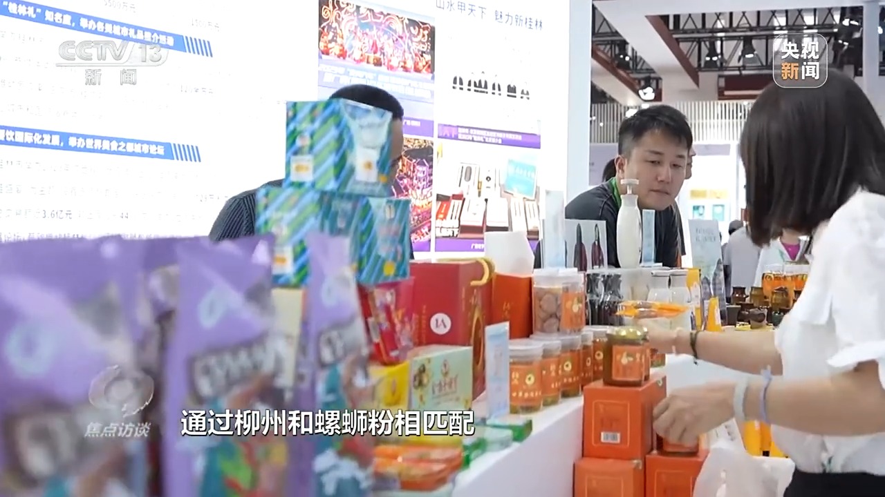 廣西壯族自治區(qū)商務(wù)廳工作人員 李春穎:往年我們都是桂茶、桂酒、桂藝,我們這一次想增加城市烙印,就選擇了六個(gè)區(qū)域消費(fèi)培育試點(diǎn)城市,讓城市跟物品相掛鉤。我們通過柳州和螺螄粉相匹配,桂林和桂林有名的文創(chuàng)相匹配。展會(huì)可能是一個(gè)星期、一個(gè)時(shí)間段,通過展會(huì)引導(dǎo)消費(fèi)者來到我們的城市,感受消費(fèi),全年消費(fèi)。