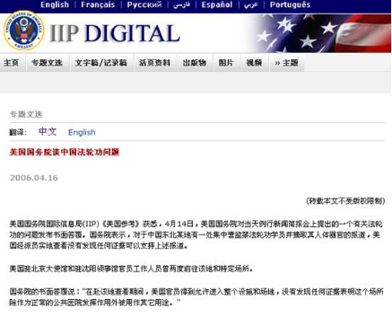 ▲2006年4月14日,美國國務(wù)院表態(tài)