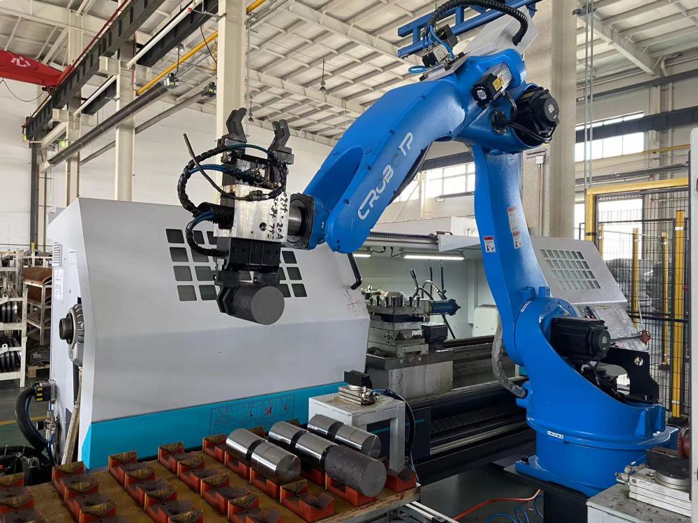 在奧瑞(天津)工業(yè)集團股份有限公司,配重軸自動加工設(shè)備正在抓取零部件。新華社記者 尹思源 攝