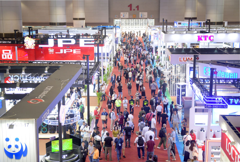4月15日,客商在廣交會(huì)展館內(nèi)選購(gòu)音箱。(盧漢欣 攝)